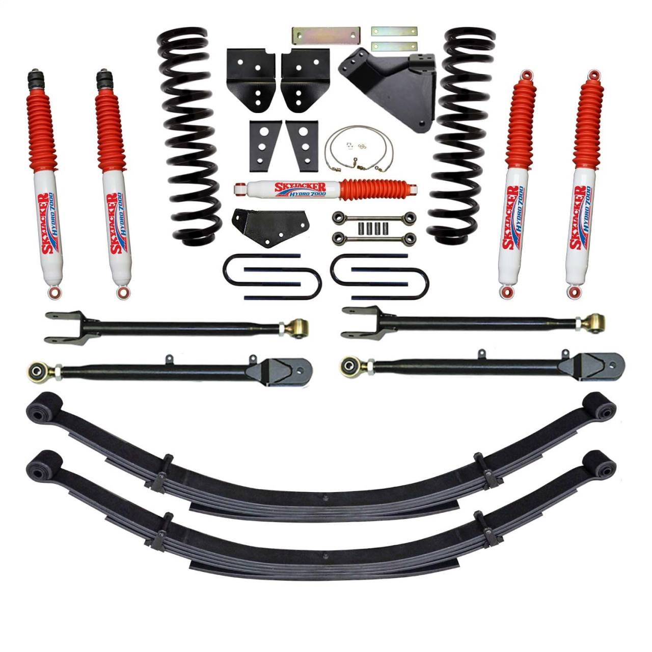 8.5 in. Lift - 4-Link Conversion - Incl. Coil Springs - Rear Leaf Springs - Hardware - Hydro Shocks