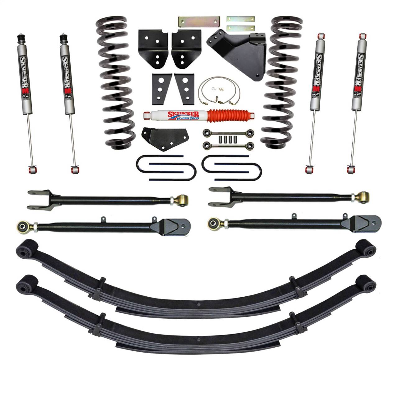 8.5 in. Lift - 4-Link Conversion - Incl. Coil Springs - Rear Leaf Springs - M95 Shocks