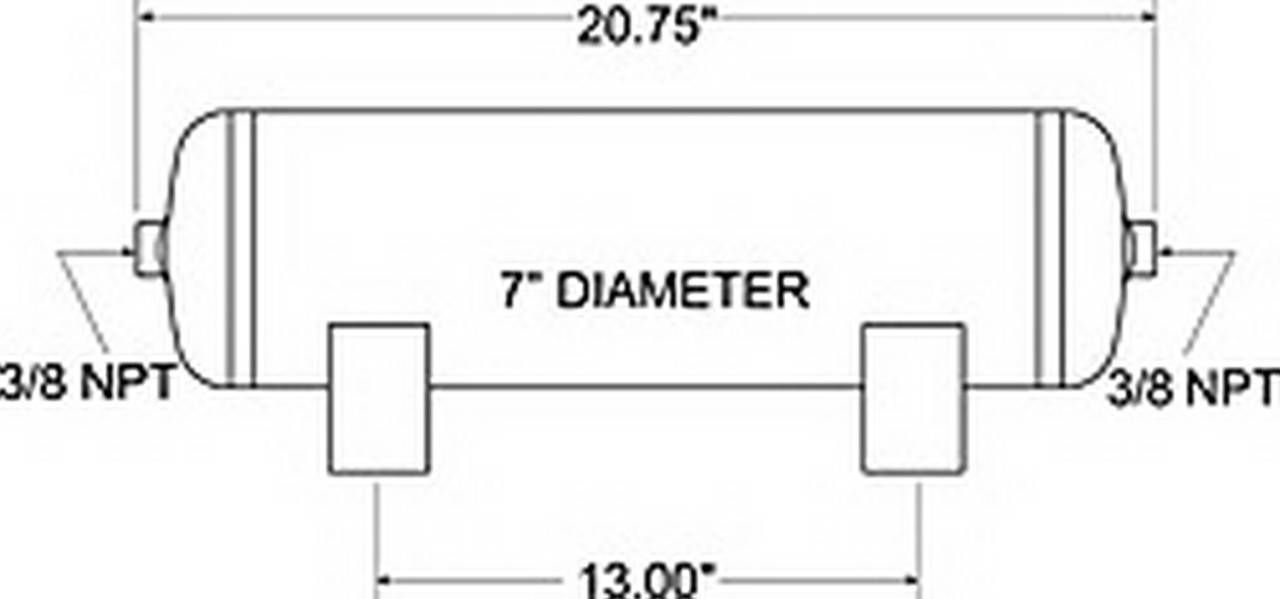 3 Gallon - 7 in. Dia. - 20.75 in. Length - Two 3/8 in. NPT Ports - 150 PSI Max - Black