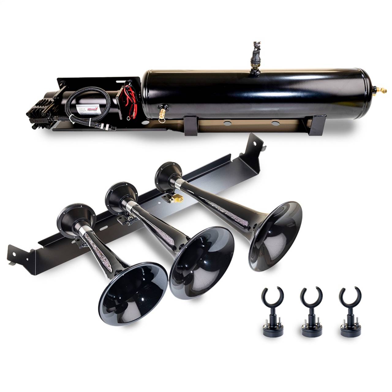 Includes Triple Black Horns PN[230]/ 150 PSI Air Compressor PN[6350RC]/ 3.0 Gallon Air Tank PN[6351RT]