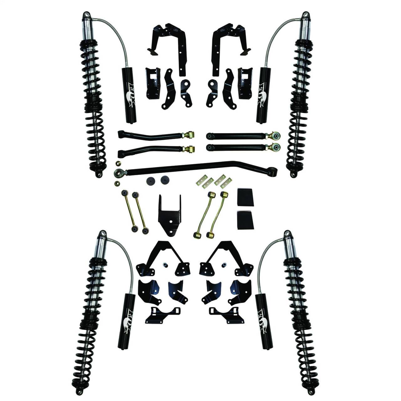 3.5-6 in. Lift - Incl. Front/Rear Fox 2 in. Remote Reservoir Coil Over Shocks w/Dual Coils - Brackets - Adjustable Lower Control Arms - Sway Bar Links