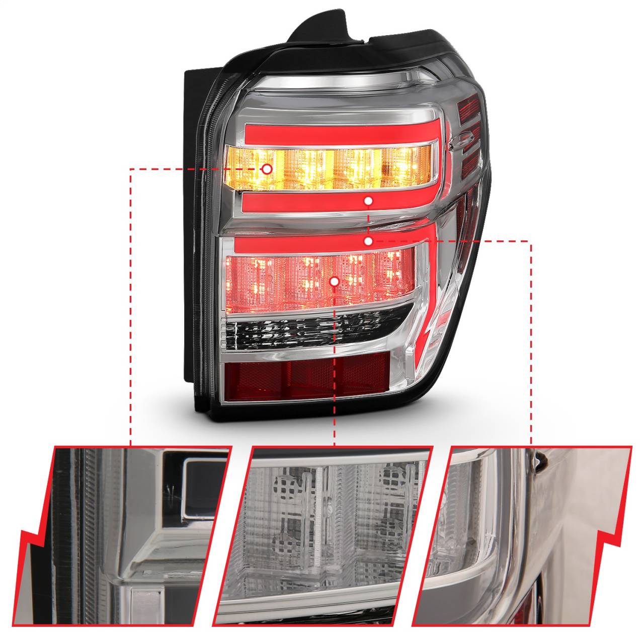 LED - Clear Lens - Chrome Housing - Red Light Bar - w/Sequential - Pair