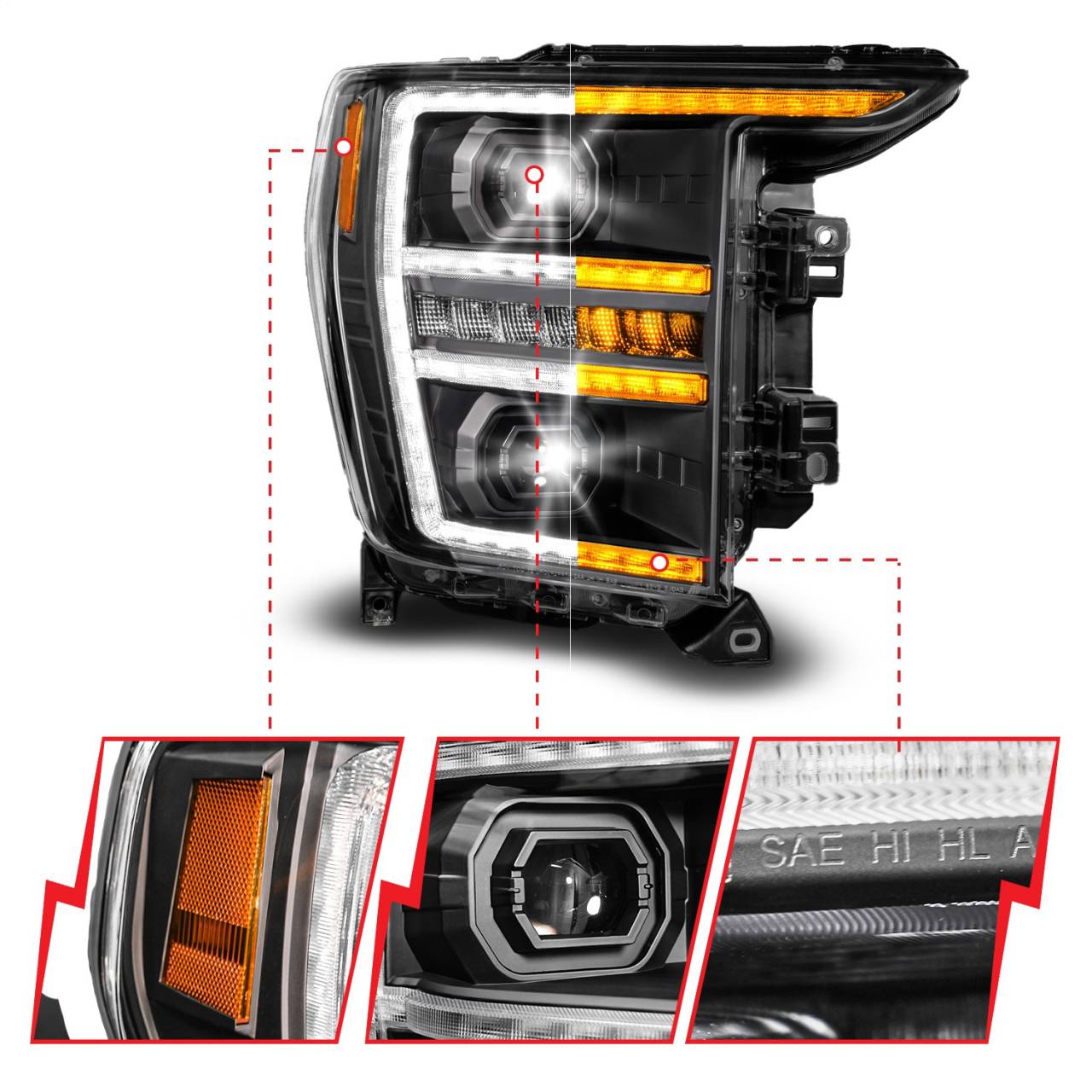 Black Housing - Full LED Trio Projector Switchback Bar/Sequential Turn Signal - w/DRL and Initiation Feature - Passenger Side