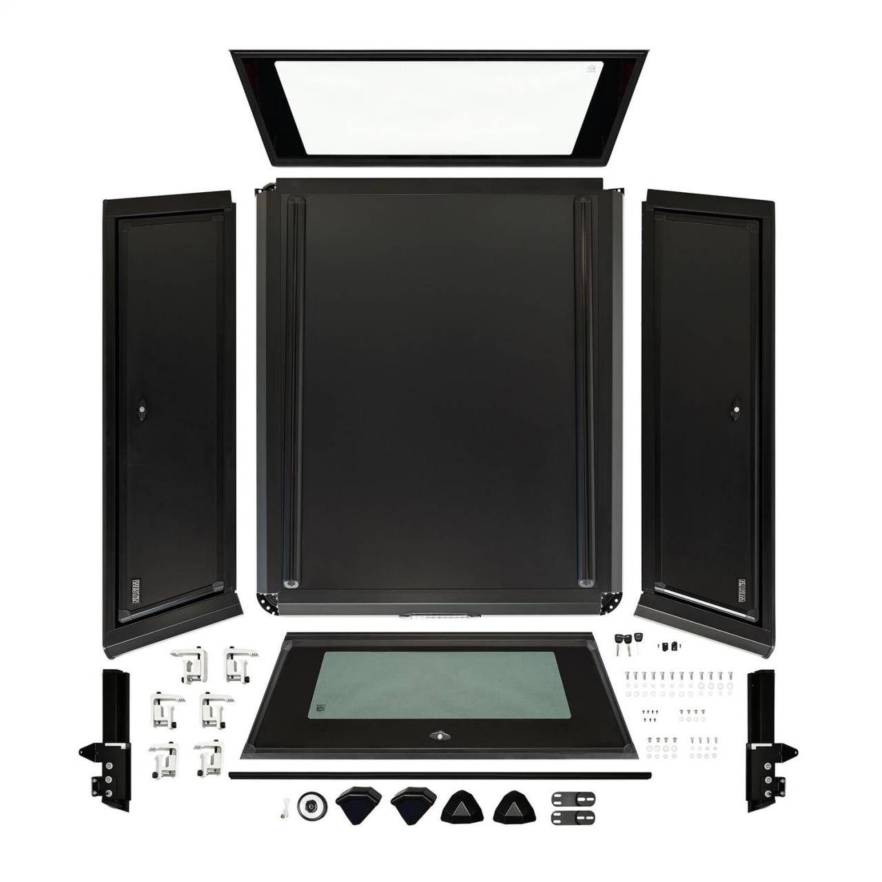 - Double wall aluminum gullwing side doors with locking t-handles