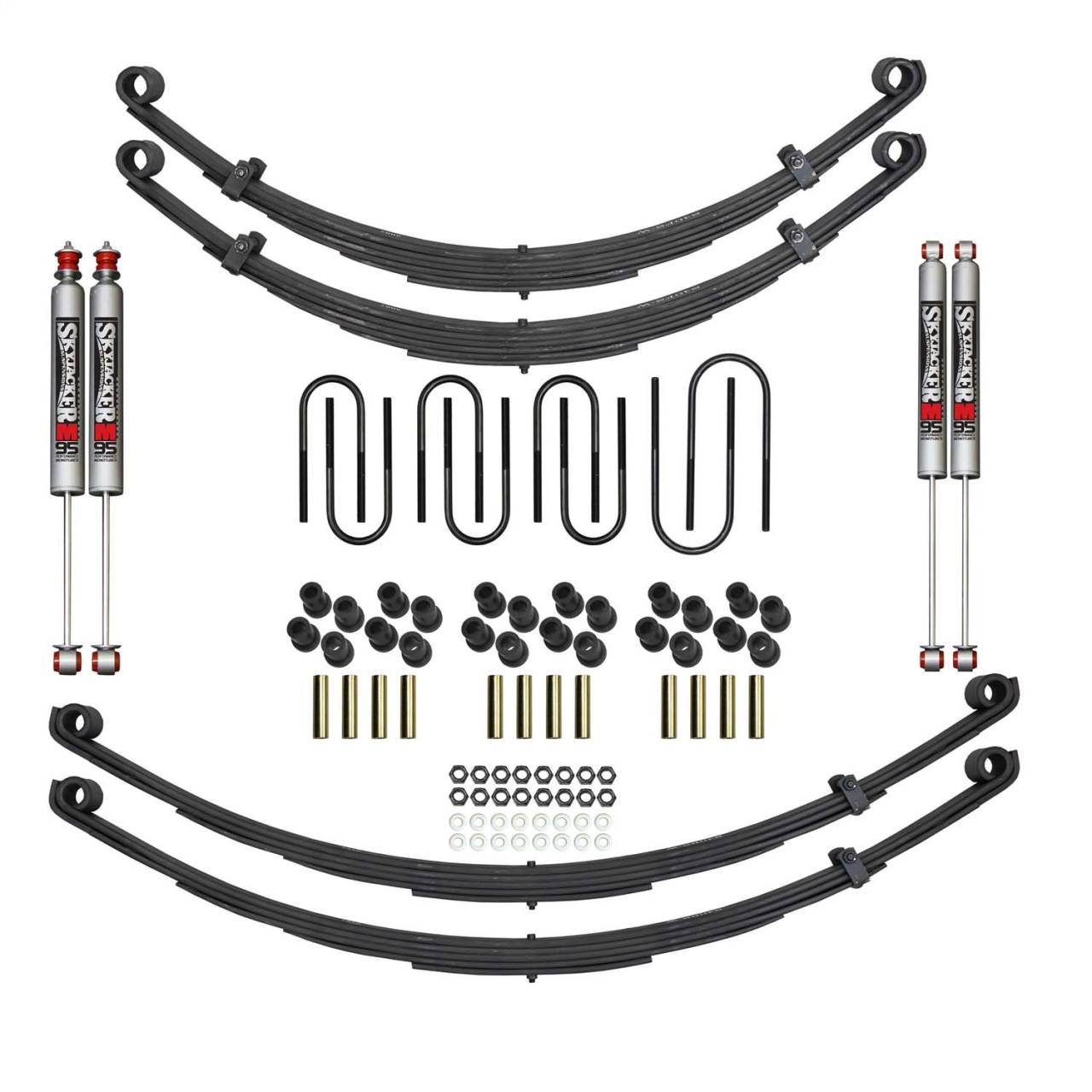 4 in. Lift - Incl. Front/Rear Leaf Springs - Front/Rear Leaf Spring Bushings/Sleeves - Front/Rear U-Bolts - Front/Rear M95 Monotube Shocks